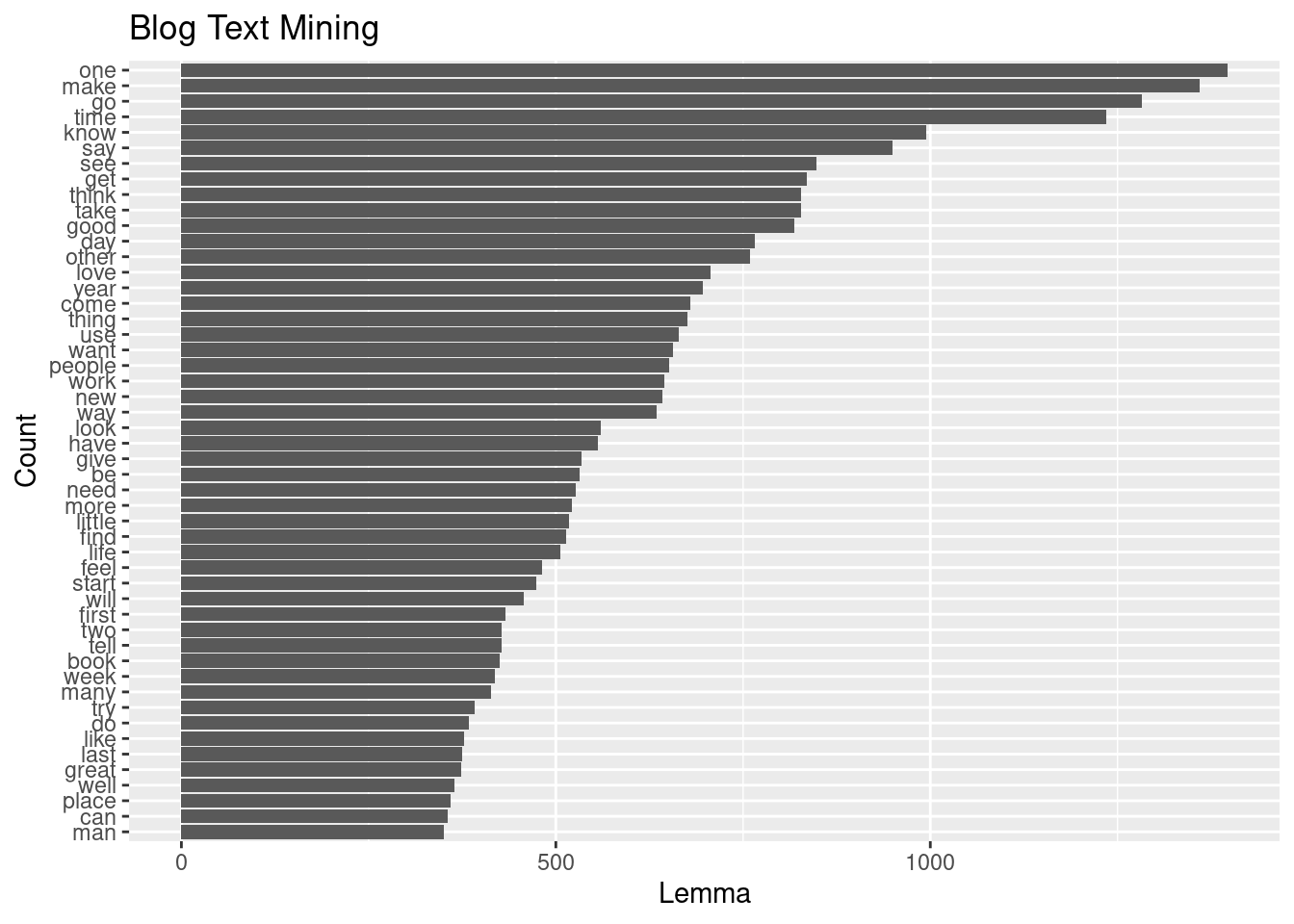 labs(x= "Lemma", y="Count", title = "Blog Text Mining")